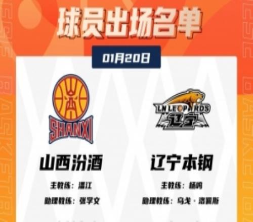 体育播报1月20日宣 今晚19:35,山西主场迎战辽宁,赛前大名单出炉。山西:陈彭宇迪、法耶、贾明儒、诺威尔、于米提...